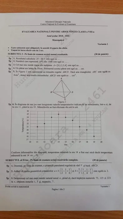 SUBIECTE EVALUARE MATEMATICĂ. Elevii clasei a VIII-a susțin proba la Matematică la Evaluarea Națională 2019