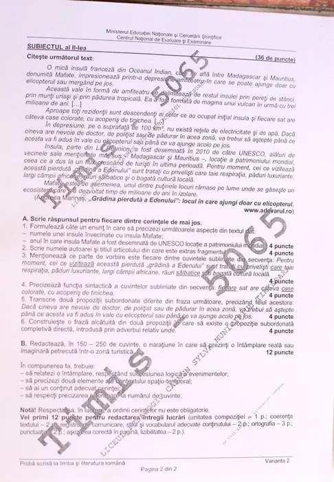 SUBIECTE EVALUARE NAȚIONALĂ 2016 ROMÂNĂ: poezie de Baconski și o narațiune despre o zonă turistică