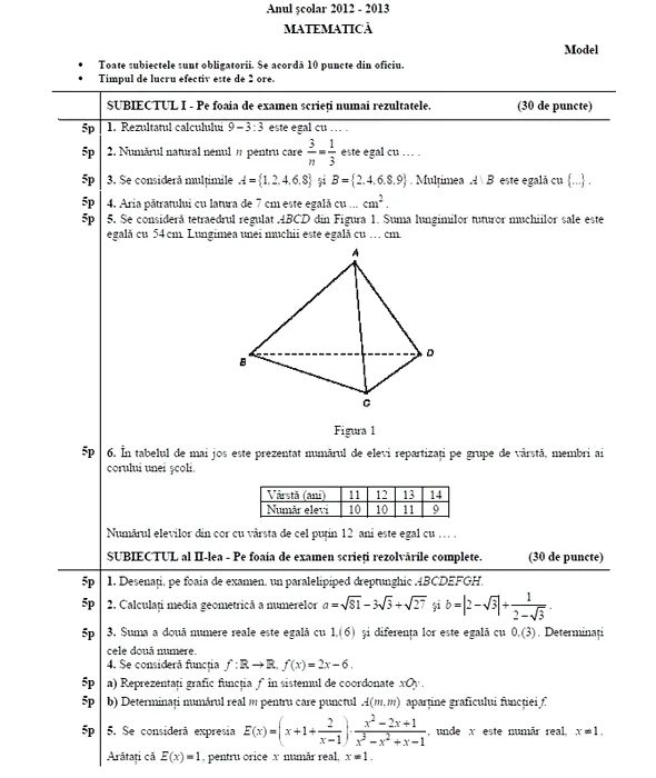 SUBIECTE MATEMATICĂ la EVALUARE NAȚIONALĂ 2013. Vezi aici ce subiecte au primit azi la MATEMATICĂ elevii de clasa a VIII-a