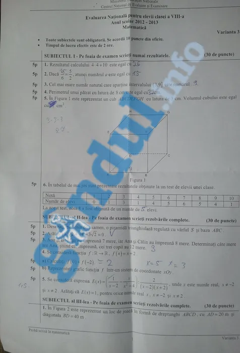 SUBIECTE MATEMATICĂ la EVALUARE NAȚIONALĂ 2013. Vezi aici ce subiecte au primit azi la MATEMATICĂ elevii de clasa a VIII-a