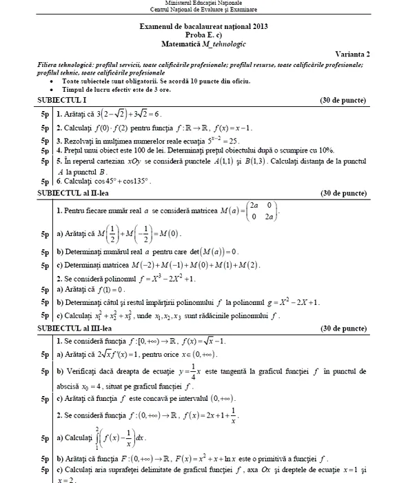 GALERIE FOTO: SUBIECTE MATEMATICĂ TEHNOLOGIC BAC 2013. Elev: „A fost mult mai greu ca în vară”