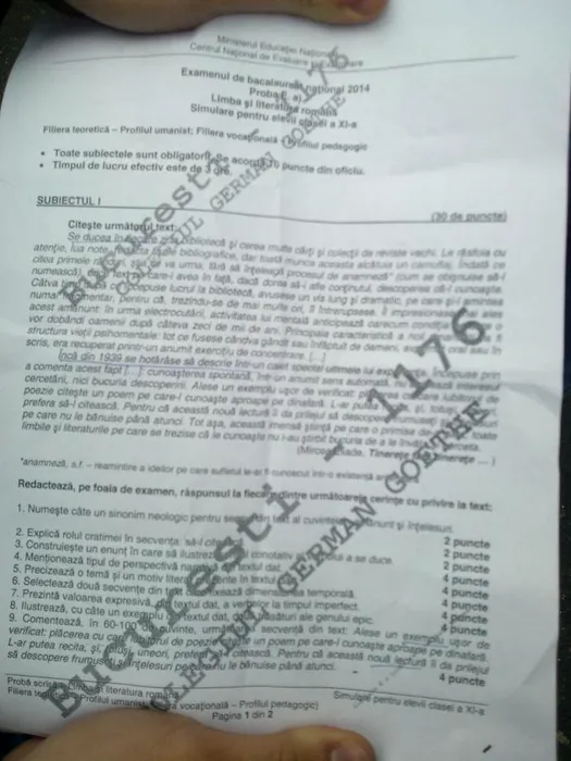 SUBIECTE ROMÂNĂ BAC 2014. Subiecte date azi la simulare română elevilor de clasa a XI-a. UPDATE
