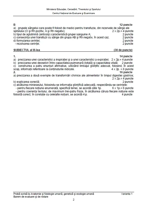 SUBIECTE ȘI BAREM BAC 2012 BIOLOGIE
