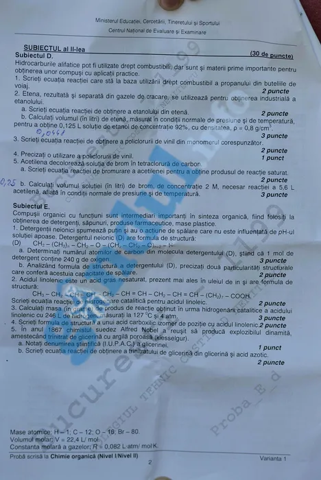 SUBIECTE ȘI BAREM BAC 2012 CHIMIE