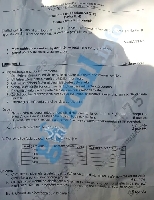 SUBIECTE ȘI BAREM BAC 2012 ECONOMIE