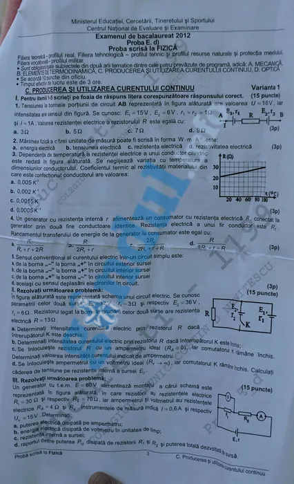 SUBIECTE ȘI BAREM BAC 2012 FIZICĂ