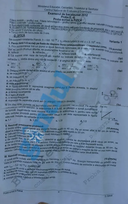 SUBIECTE ȘI BAREM BAC 2012 FIZICĂ