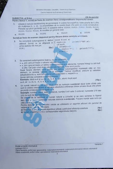 SUBIECTE ȘI BAREM BAC 2012 INFORMATICĂ
