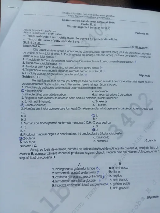 SUBIECTE ȘI BAREME BACALAUREAT 2016 Chimie, Fizică, Logică, Informatică, Sociologie, Psihologie, Economie și Filosofie
