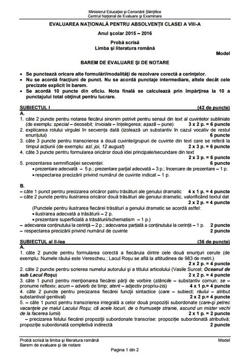Subiecte Simulare Evaluare Națională 2016 Limba și Literatura Română. Modele de subiecte și bareme pentru clasa a VIII-a, pe EDU.RO