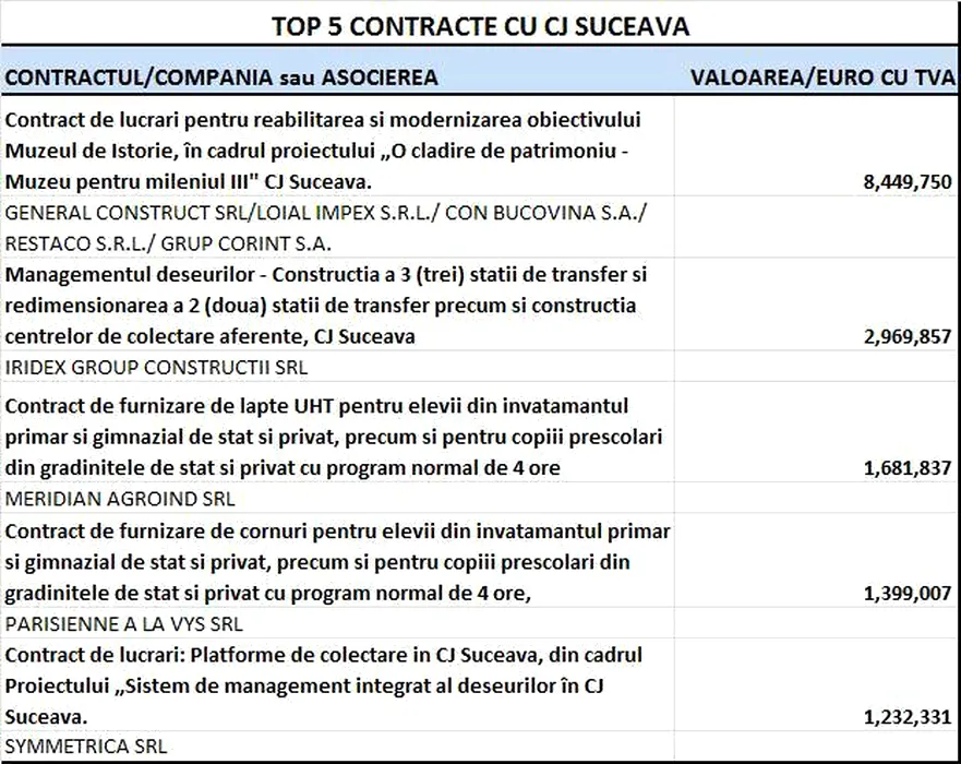 SUCEAVA. Unde au mers banii publici în 2014. Topul firmelor care au contracte locale cu statul