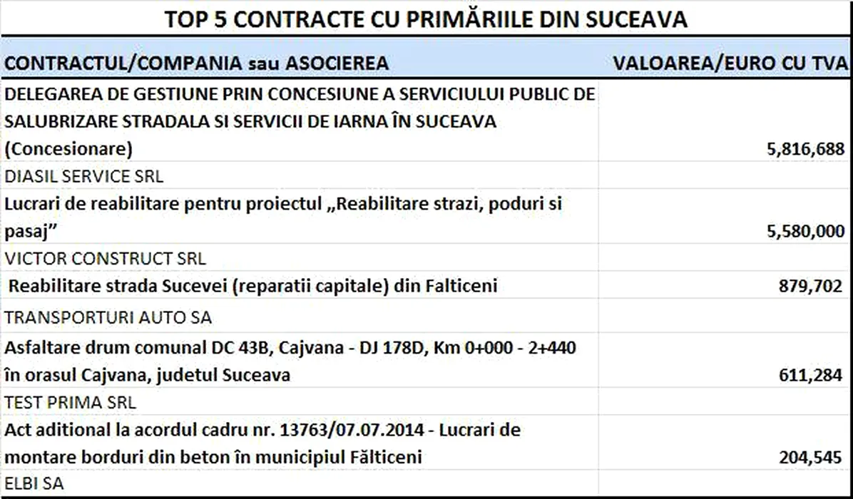 SUCEAVA. Unde au mers banii publici în 2014. Topul firmelor care au contracte locale cu statul
