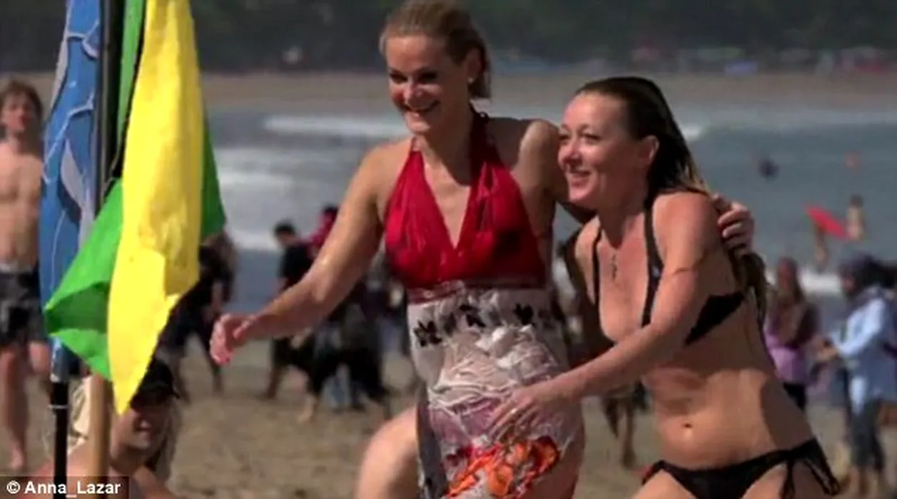 Surfing cu tocuri în picioare. Rusoaicele fac spectacol pe valurile din Bali. VIDEO