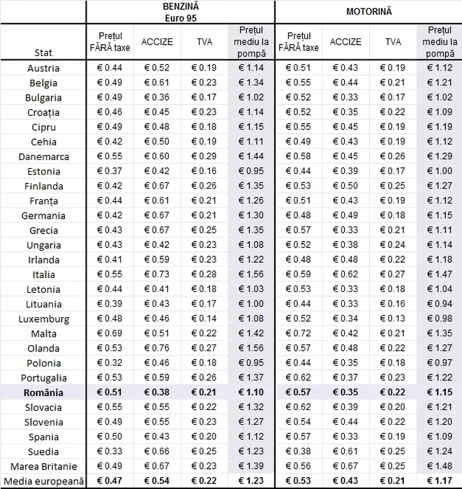 Surpriza de la pompă: cu ce preț iei azi UN LITRU DE BENZINĂ în România și în alte 20 de țări din Europa