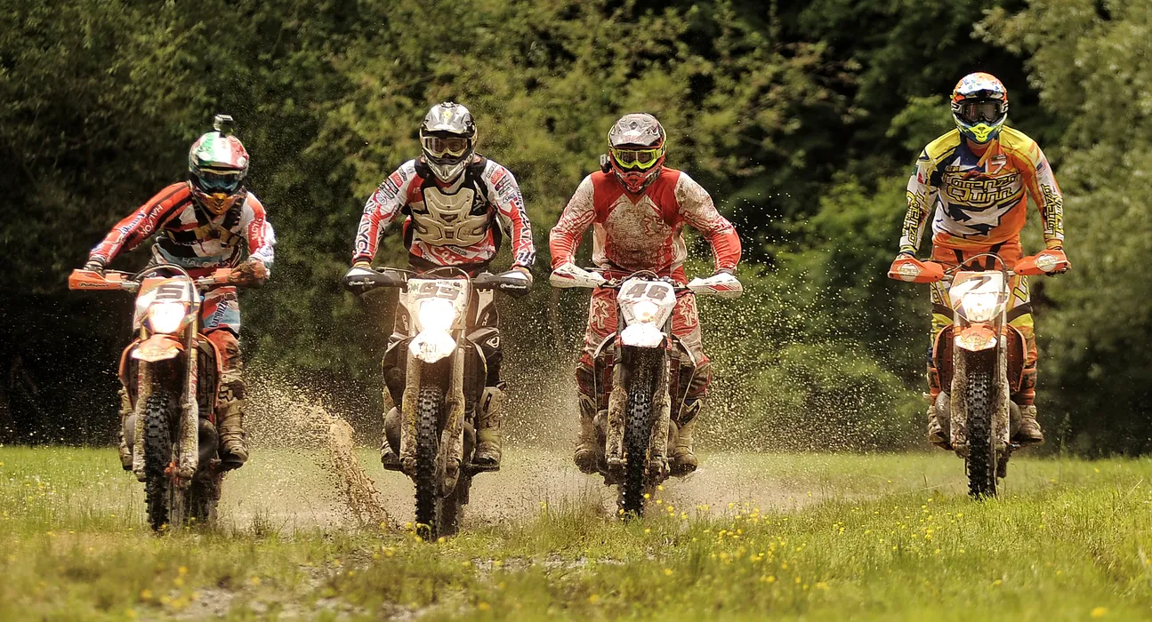 Surpriza din acestă fotografie de la concursul hard enduro de la Sibiu. Cine este primul motociclist din imagine
