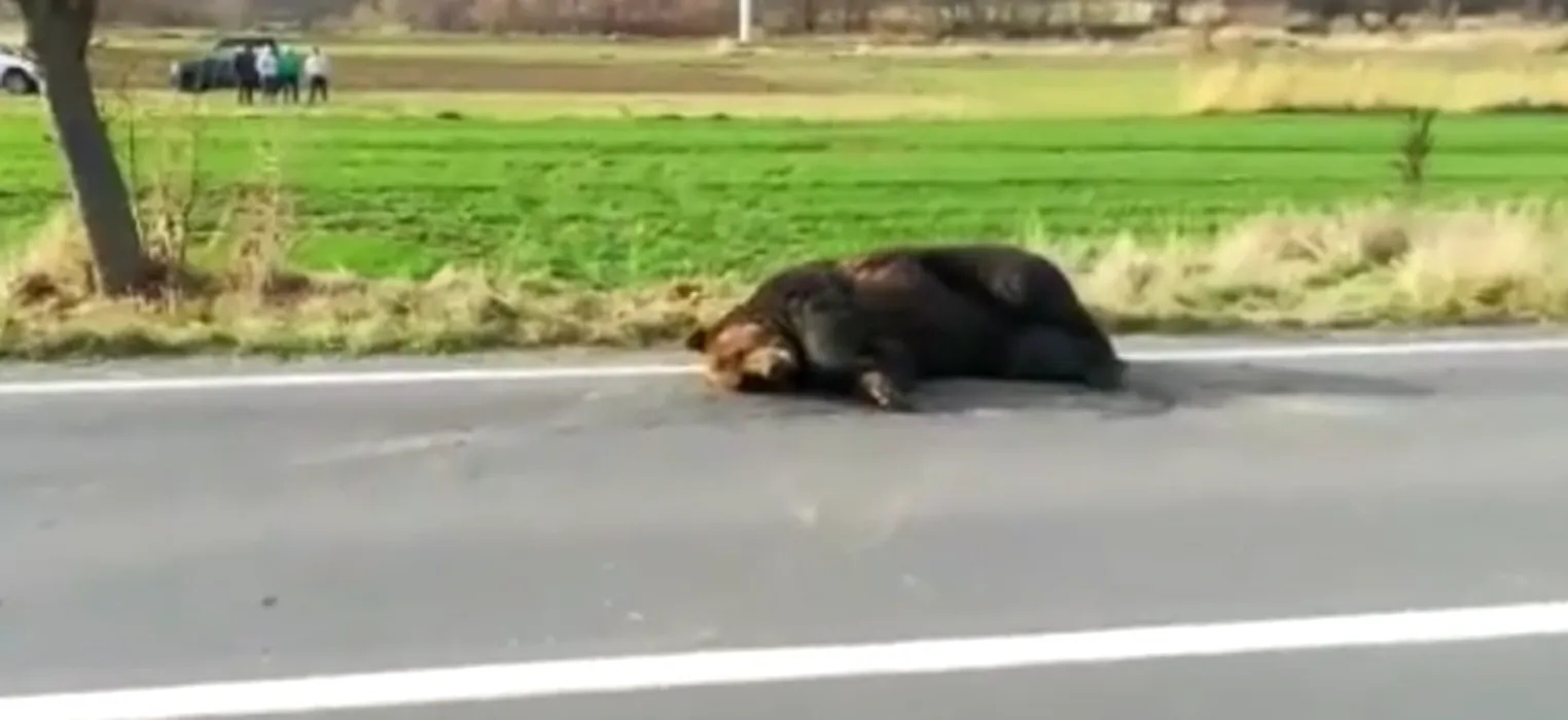 Surpriză pentru șoferul care a lovit un urs pe DN13A / Animalul a zăcut 18 ore în agonie pe carosabil, apoi a fost împușcat