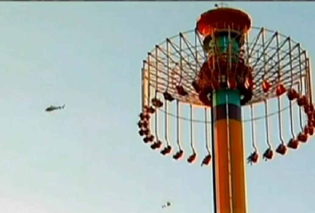Suspendați timp de patru ore, la 90 de metri înălțime. Surpriza unor turiști într-un parc de distracții