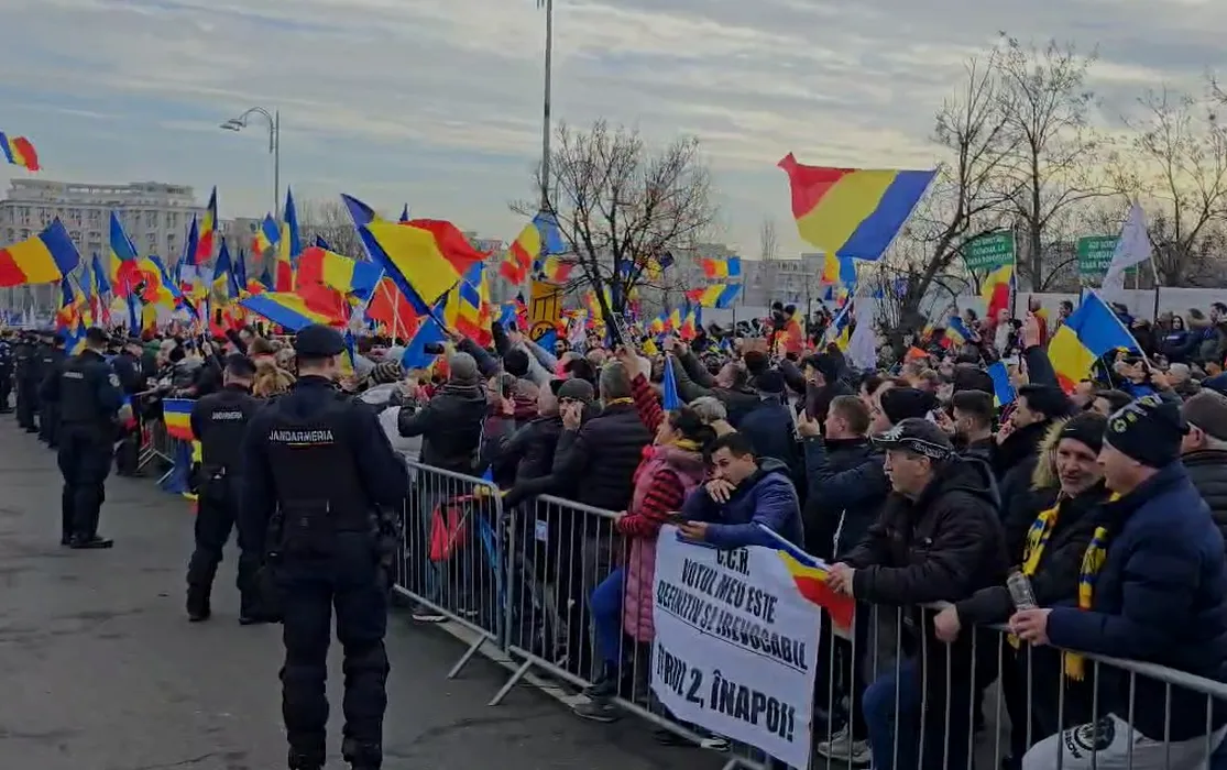 Susținătorii lui Călin Georgescu, miting la sediul CCR: „Turul 2 înapoi” / Protestul nu a fost autorizat de Jandarmerie