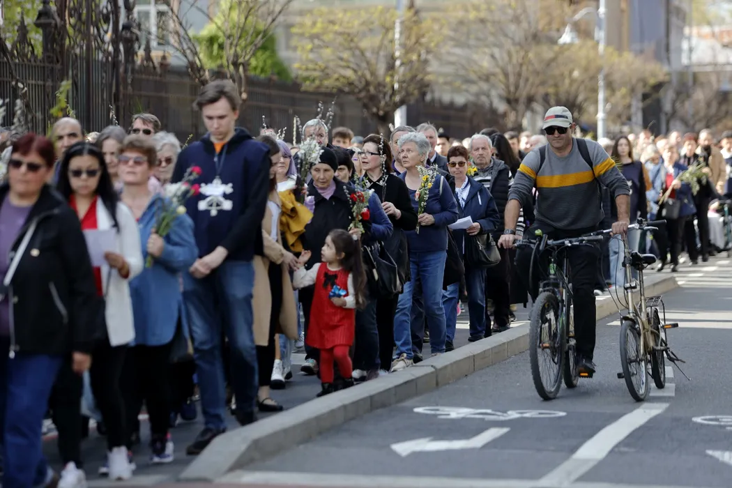 Sute de credincioși au participat la PROCESIUNEA de Florii, organizată de Arhiepiscopia Romano-Catolică în centrul Capitalei