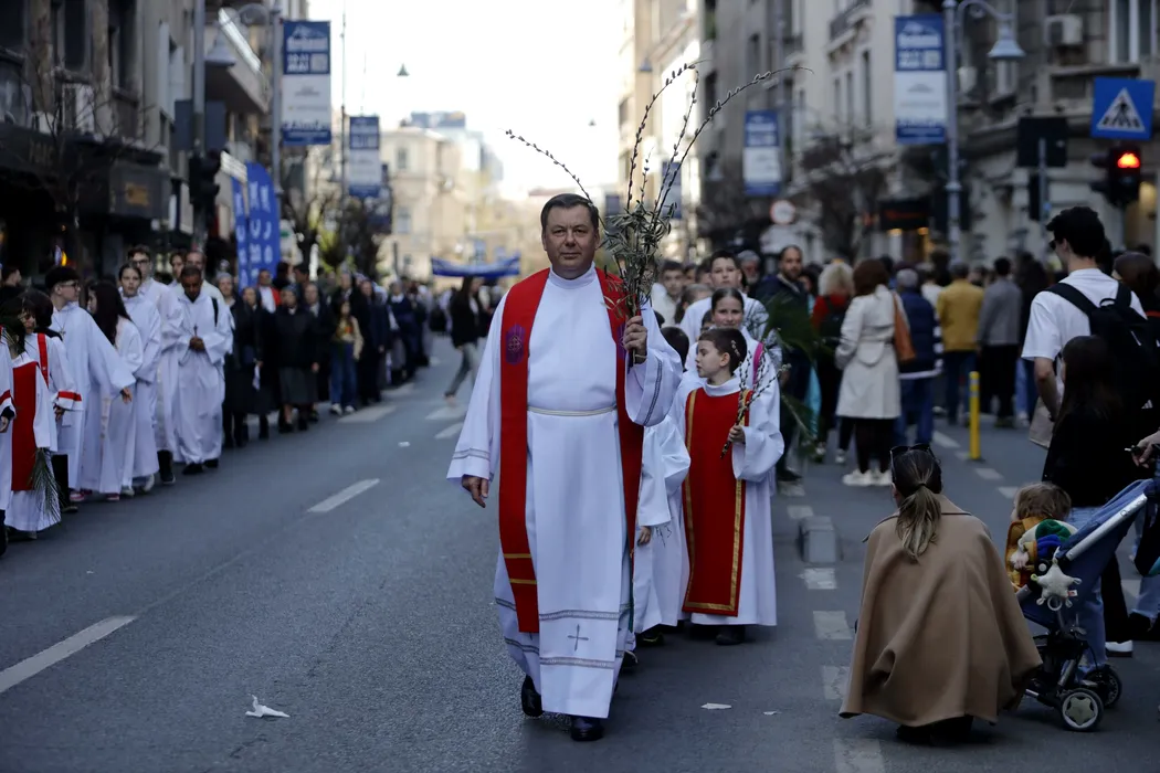 Sute de credincioși au participat la PROCESIUNEA de Florii, organizată de Arhiepiscopia Romano-Catolică în centrul Capitalei