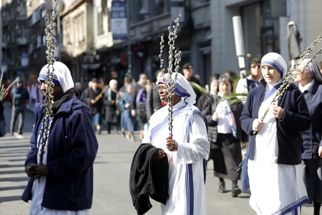 Sute de credincioși au participat la PROCESIUNEA de Florii, organizată de Arhiepiscopia Romano-Catolică în centrul Capitalei