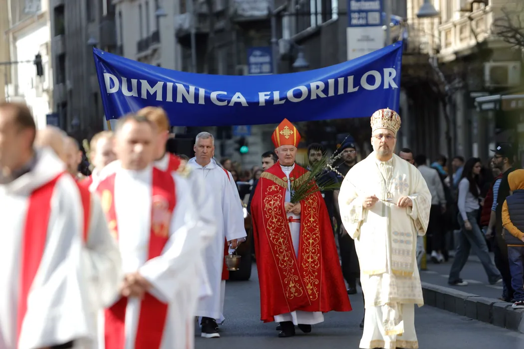 Sute de credincioși au participat la PROCESIUNEA de Florii, organizată de Arhiepiscopia Romano-Catolică în centrul Capitalei