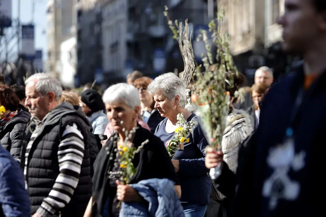 Sute de credincioși au participat la PROCESIUNEA de Florii, organizată de Arhiepiscopia Romano-Catolică în centrul Capitalei