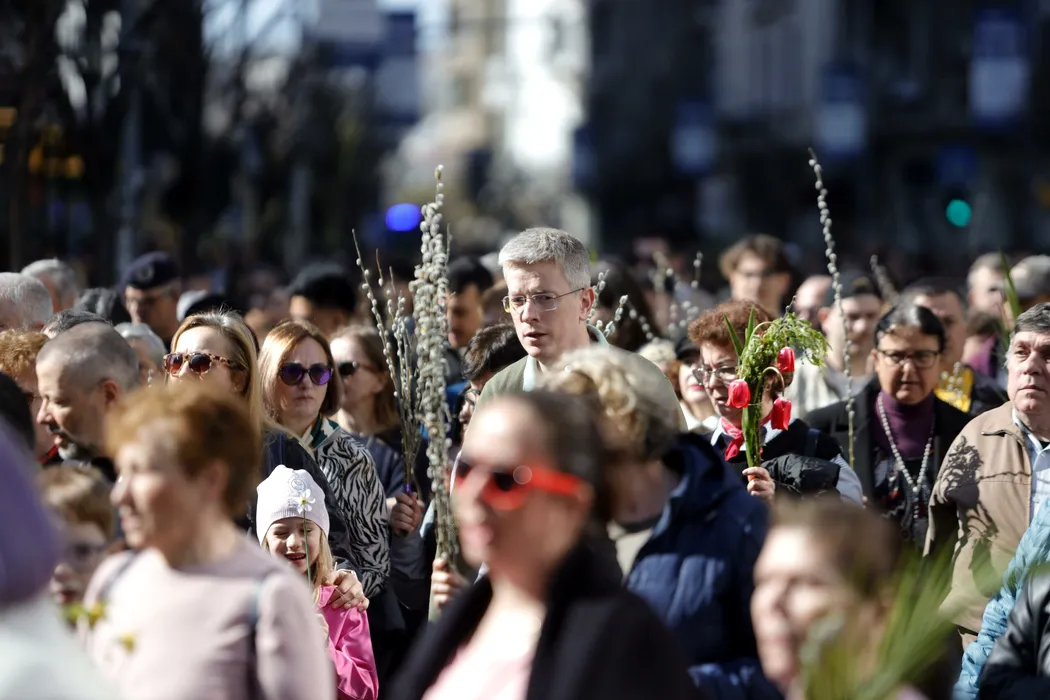 Sute de credincioși au participat la PROCESIUNEA de Florii, organizată de Arhiepiscopia Romano-Catolică în centrul Capitalei