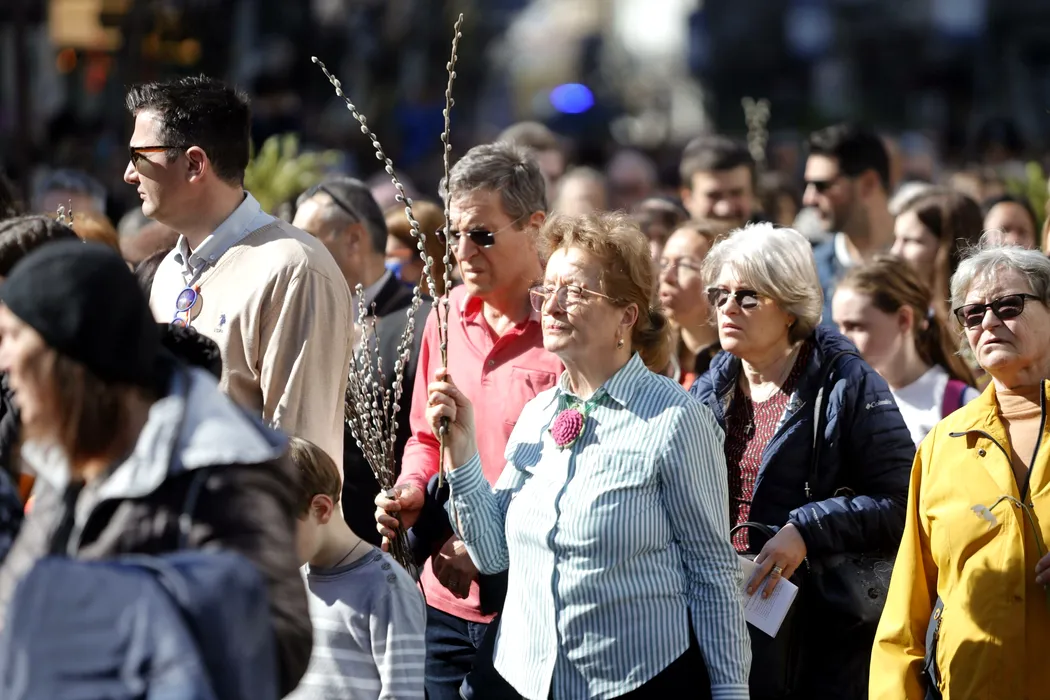 Sute de credincioși au participat la PROCESIUNEA de Florii, organizată de Arhiepiscopia Romano-Catolică în centrul Capitalei