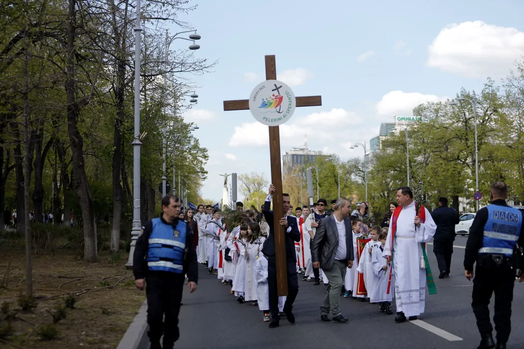 Sute de credincioși au participat la PROCESIUNEA de Florii, organizată de Arhiepiscopia Romano-Catolică în centrul Capitalei