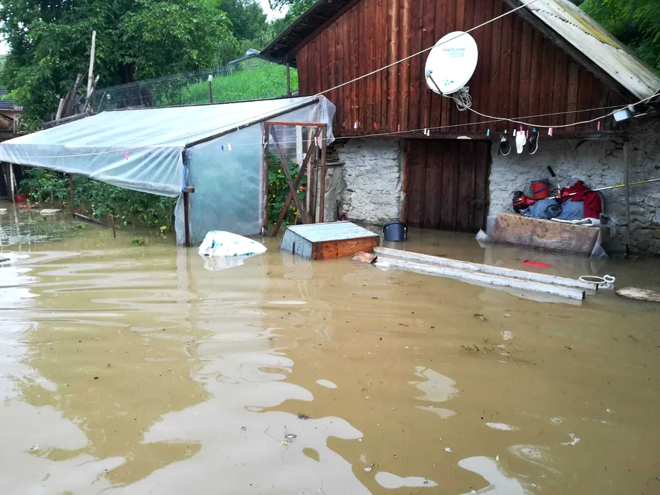 SUTE de curți, subsoluri, locuințe și drumuri, INUNDATE în județul Neamț. Podul dintr-o localitate a fost DISTRUS