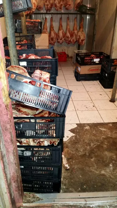 Sute de kilograme de carne ținute într-o mizerie cruntă și ustensile ruginite, la o carmangerie din Constanța. GALERIE FOTO