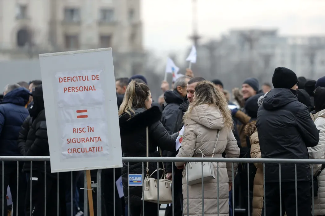 Sute de sindicalişti ai METROREX protestează în faţa Ministerului Finanțelor: Solicită creșteri salariale și respectarea drepturilor contractuale