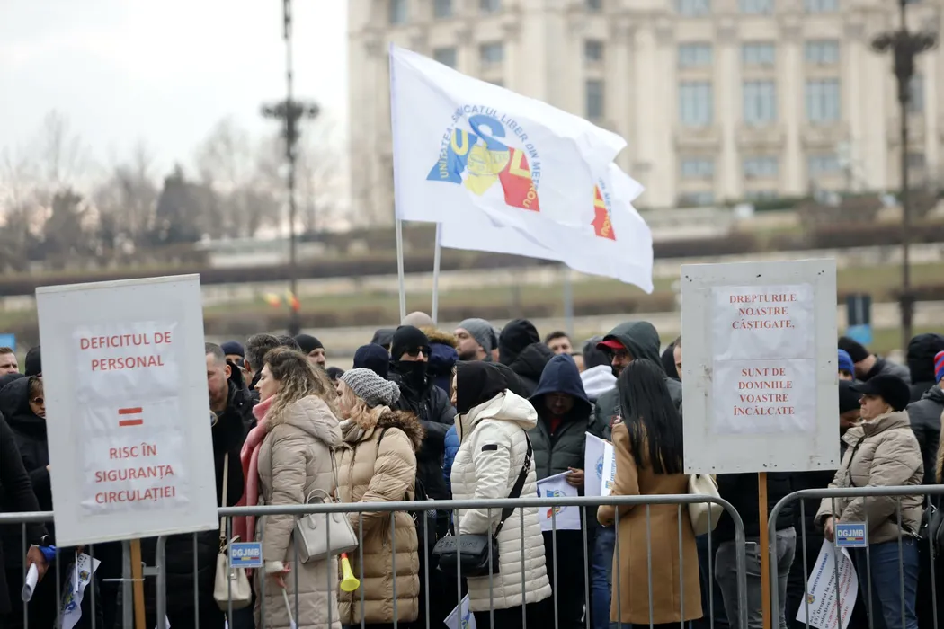 Sute de sindicalişti ai METROREX protestează în faţa Ministerului Finanțelor: Solicită creșteri salariale și respectarea drepturilor contractuale