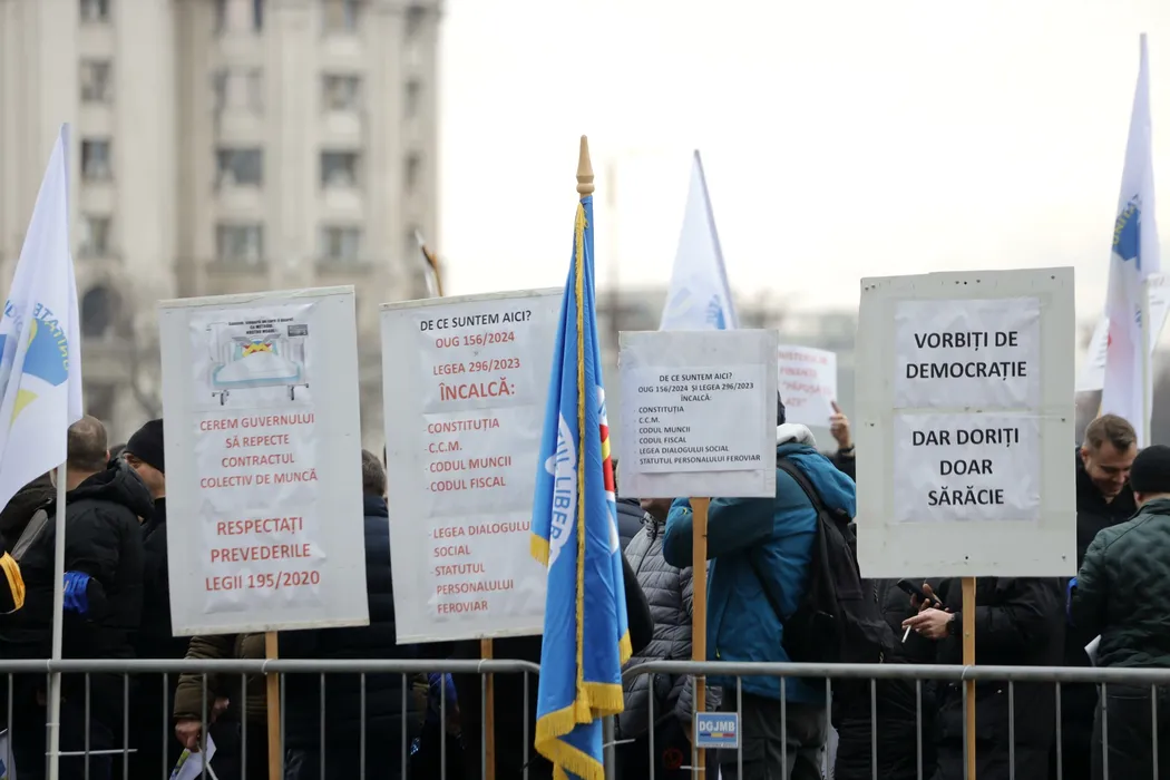 Sute de sindicalişti ai METROREX protestează în faţa Ministerului Finanțelor: Solicită creșteri salariale și respectarea drepturilor contractuale