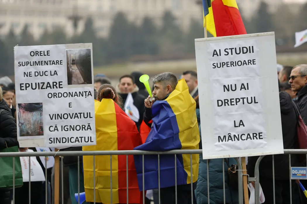 Sute de sindicalişti ai METROREX protestează în faţa Ministerului Finanțelor: Solicită creșteri salariale și respectarea drepturilor contractuale