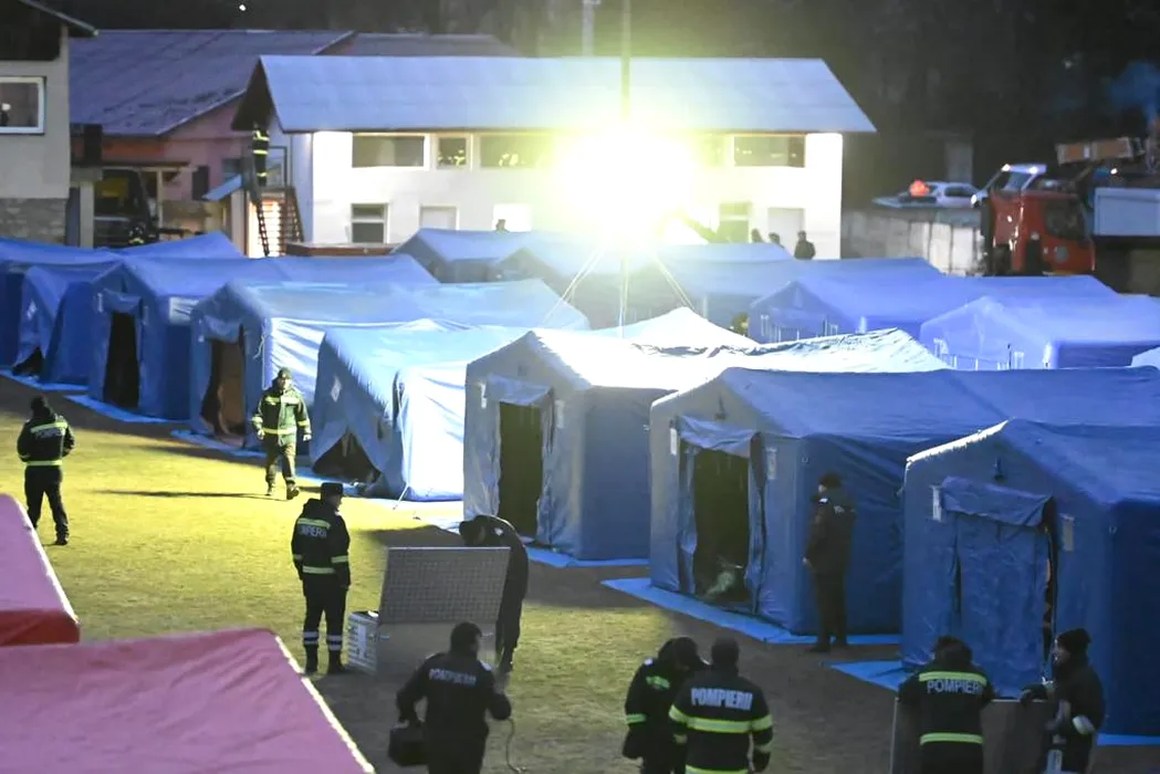 FOTO-VIDEO | Tabără mobilă montată pe stadionul din Siret, în care vor fi putea fi cazați temporar refugiați din Ucraina. Sunt disponibile 30 de corturi