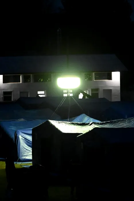FOTO-VIDEO | Tabără mobilă montată pe stadionul din Siret, în care vor fi putea fi cazați temporar refugiați din Ucraina. Sunt disponibile 30 de corturi