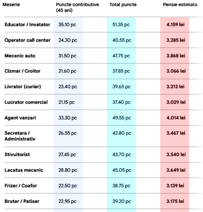 Tabel pensii | Ce pensie vei primi pentru meseria ta, daca ai muncit 45 de ani cu carte de muncă