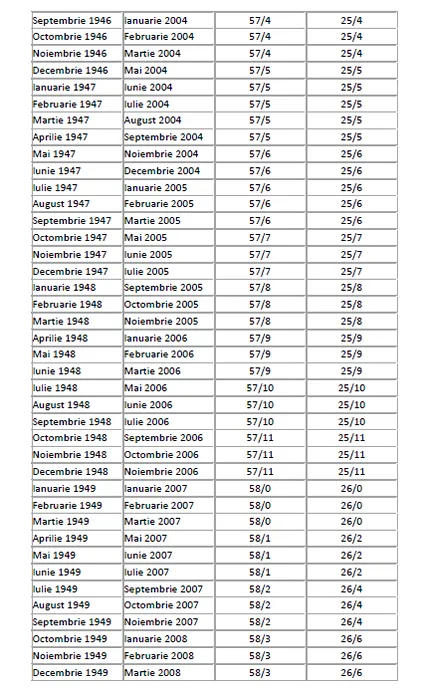 Tabel cu vârste standard de pensionare și stagii complete de cotizare pentru Femei (2)