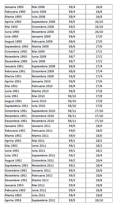 Tabel cu vârste standard de pensionare și stagii complete de cotizare pentru Femei (3)