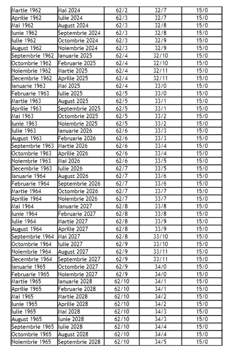 Tabel pentru bărbați și femei | Pe ce dată ieși la PENSIE, în funcție de luna și de anul nașterii