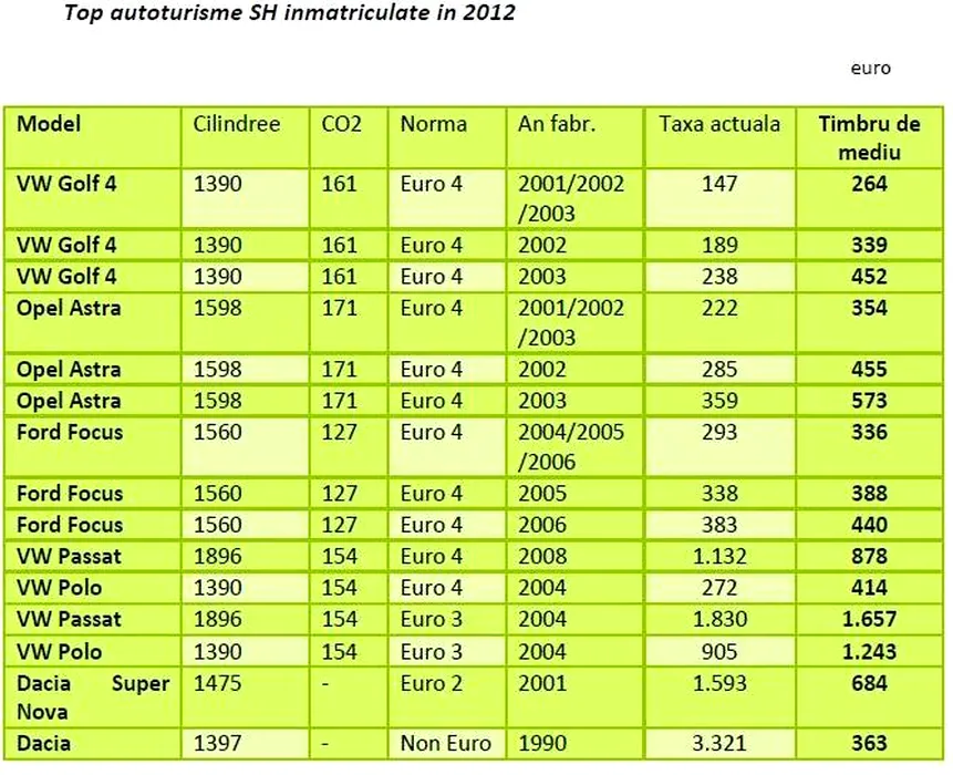 TAXA AUTO 2013. Care este noua formulă de calcul pentru timbrul de mediu