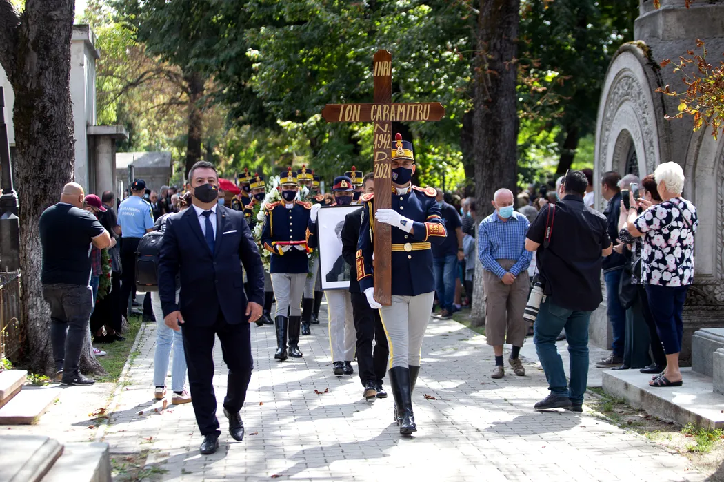 „Te iubesc, tată! Nemuritor pentru mine”. Ultimul drum al lui Ion Caramitru, în ropote de aplauze și salve de pușcă (FOTOREPORTAJ)