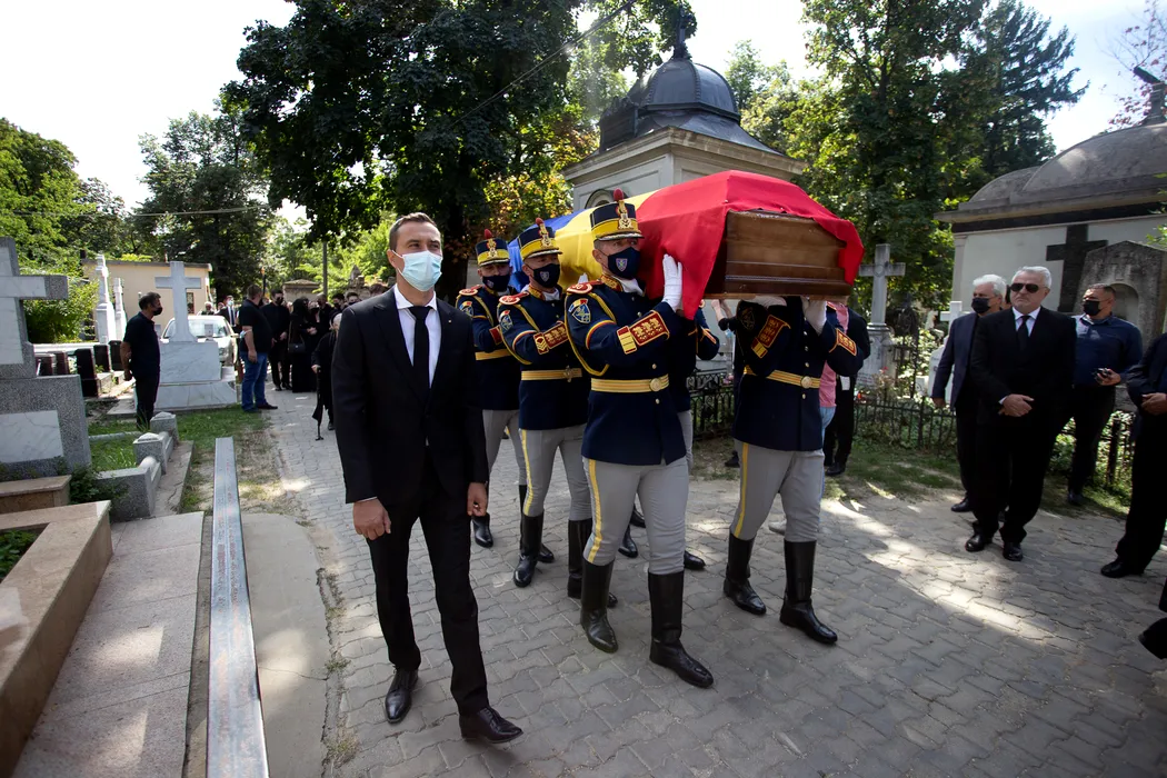 „Te iubesc, tată! Nemuritor pentru mine”. Ultimul drum al lui Ion Caramitru, în ropote de aplauze și salve de pușcă (FOTOREPORTAJ)