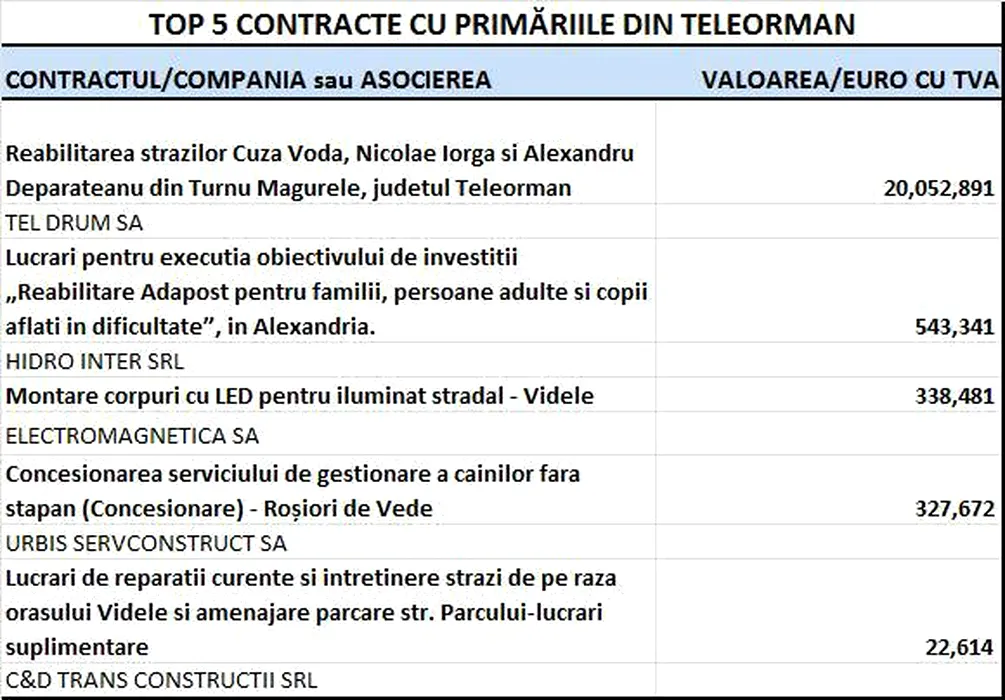 TELEORMAN. Unde au mers banii publici în 2014. Topul firmelor care au contracte locale cu statul