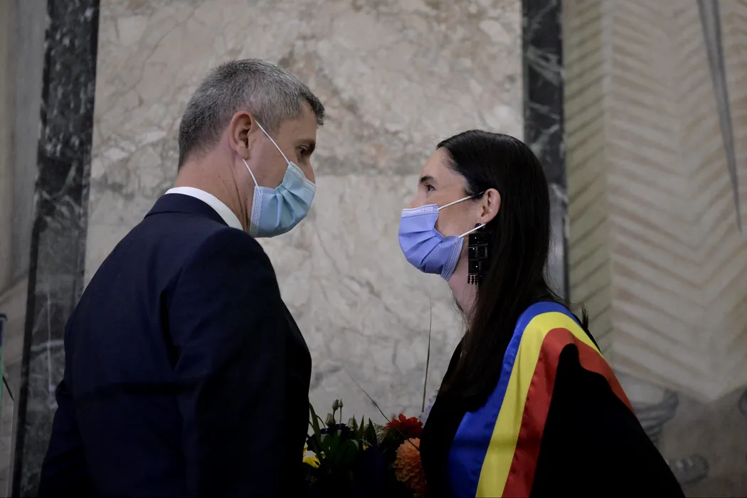GALERIE FOTO: Tensiuni și priviri de gheață în spatele camerelor de luat vederi la depunerea jurământului / Nicușor Dan a redus la minimum interacțiunile cu liderii USR și PLUS, Dacian Cioloș și Dan Barna / Clotilde Armand a primit cu răceală felicitările lui Barna
