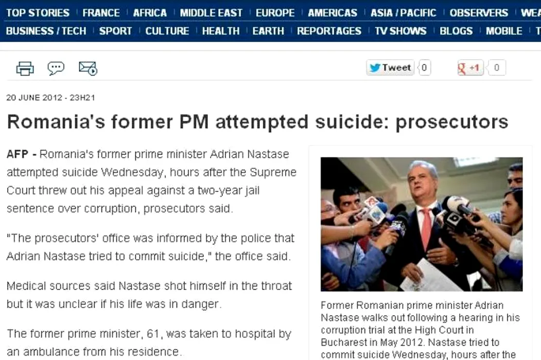 Tentativa de SINUCIDERE a lui ADRIAN NĂSTASE, relatată în PRESA INTERNAȚIONALĂ