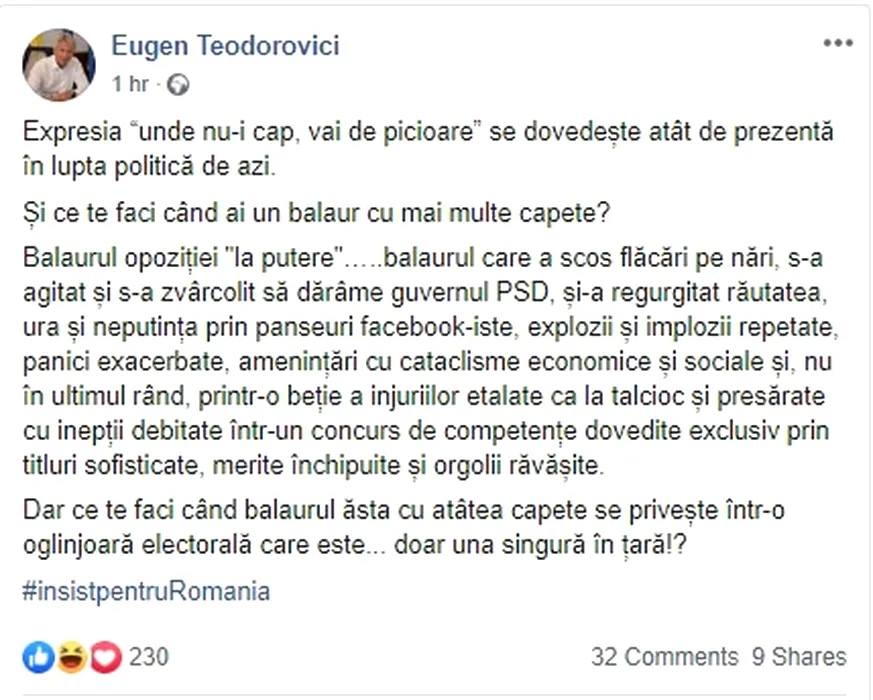Teodorovici, pe final de „mandat”: Expresia „Unde nu-i cap, vai de picioare” se dovedește prezentă în politica de astăzi