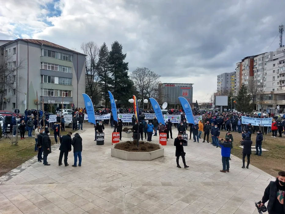 „Țepe” pentru ministrul Energiei. Sute de angajați de la ALRO Slatina au protestat în fața prefecturii Olt, de teamă că își vor pierde slujbele